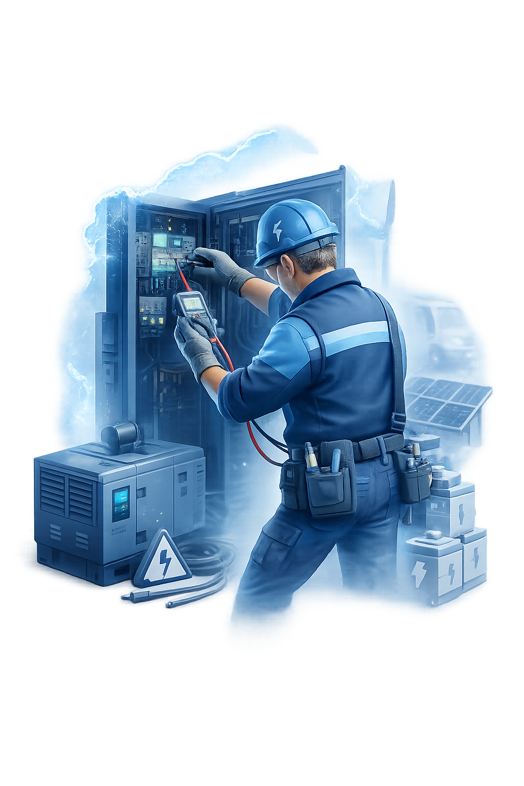 Je doet onderhoud aan noodstroomsystemen en lost storingen op.